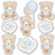Cute Boho Teddy Bear with Pastel Blue Balloon