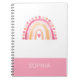 Cute Boho Watercolor Rainbow in Pink personalised Notebook