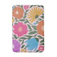 This fun, colourful bath mat features a hand drawn floral design in magenta / fuchsia pink, orange, golden yellow, purple, blue, and green over a custom colour background (shown in light pink). The floral design's art style is almost chalk - like / pastels. We carry matching bathroom items!