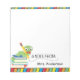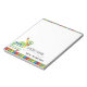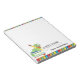 This teacher notepad features a graphic of a cute bookworm sitting on top of a stack of school books. The note pad accented with primary colored stripes on the top and bottom. This makes a great personalized gift for any teacher.
