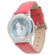 Badger is a very cute black and white border collie dog, he looks so cute because he’s offering his favourite little blue teddy bear toy to let his mum know he loves her. This collie dog protrait has a nice sky blue background that brings this wrist watch design alive The cool trendy watch has a matching wrist strap and can be worn by anyone, but especially anyone who loves the border collie breed, they really are a very special working dog breed. This collie dog portait art watch will make a wonderful gift for someone special who loves all breeds of dogs , but especially border collies with exceptionally cute expressions, or perhaps you simply want to treat yourself to this great original designer wrist watch. This is a customisable watch, you can personalise it with your own text. The original artwork for Badgers pet portrait is painted in soft pastel.