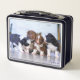 This is a standard metal lunchbox that appears to work just fine. We designed this box ourselves with an uploaded photo and custom text on the front and back. It looks absolutely beautiful except the front of the lunchbox is not centered like it shows in the photo. The print borders don't align with the inset flat part of the box where the preview photo online showed it perfectly centered in there. The back looks nice and centered though.