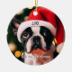 Cute Boston Terrier Puppy with Santa Hat Ceramic Tree Decoration