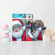 Cute Boston Terrier Meets Santa Clause. Fashionable, whimsical pop art holiday design. Have a dog gone good x-mas this holiday season.