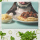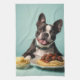 Cute Boston Terrier With Spaghetti Bolognaise Tea Towel