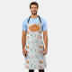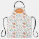 Pretty spring floral pink, orange, and sage green patterned feminine apron with personalised name / text over an orange oval geometrical shape.