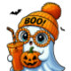 Cute Bougee Ghost Halloween Ghost with Pumpkin & Drink | Fall Sublimation Design for Kids, Shirts & Crafts