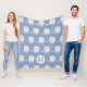 Cute Bouncing White Cat Pattern Monogram Blue Fleece Blanket