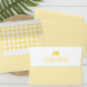 Celebrate the upcoming arrival of a little one with our delightful pastel yellow and white return address envelope made to match our custom baby shower invitation. This timeless design features a sweet yellow bow with return address on the upper back flap on a white background. When the envelope is opened it reveals a gender neutral yellow and white gingham check pattern. The remaining exterior portion of the envelope is finished in light yellow and coordinates with the interior gingham check and exterior yellow bow. The return address information event details are elegantly presented in stylish yellow lettering.