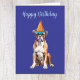 This adorable Boxer dog birthday card includes a cute Boxer dog in a birthday hat graphic as well as a custom saying on the inside. This design also includes a magenta background. Enjoy this Boxer puppy birthday card!