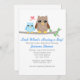 A cute and whimsical baby shower invitation featuring a mother owl and her baby.