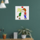Cute boy girl kiss cartoon kids poster
