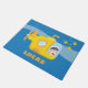 A cute little boy with a captain hat is driving the yellow submarine and embarking on an underwater adventure among the fishes. Great for kids room with an under the sea theme. Personalise with boy's name.
