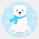Cute Boy Polar Bear Winter Snowflake Blue Classic Round Sticker