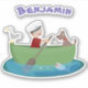 For nautical fun! This design features a boy rowing his boat on the ocean with a dog and sea gull with a happy fish saying hello! Drawn in cute cartoon illustration style.