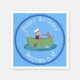 For nautical fun! This design features a boy rowing his boat on the ocean with a dog and sea gull with a happy fish saying hello! Drawn in cute cartoon illustration style.