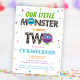 Cute Boys Blue Monster 2nd Birthday Party Invitation