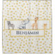 A baby giraffe, elephant, zebra, and lion are featured against a cute tan coloured animal print pattern background. Personalise this adorable kids bath mat for a boy or a girl with the name of your choice. This design is perfect for your new baby nursery bathroom or a kids room.