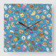 Wall clock with super cute breakfast food illustrations. This fun pattern design has cereal, milk, bacon, eggs, doughnuts and so many other cute food doodles.