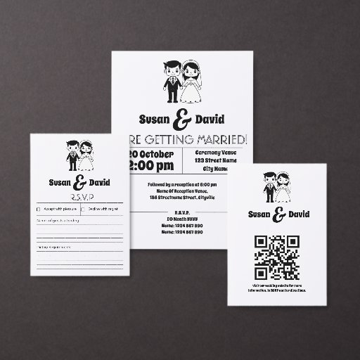 Celebrate your special day with this charming ' and minimalistic invitation featuring a cartoon bride and groom. Ideal for announcing your wedding in a fun and stylish way!