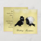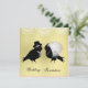 Such a cute wedding invitation with a black and a pair of love birds dressed as bride and groom in top hat and veil under white lacy filigree decor on a lovely blonde gold coloured base. Just personalise it with your own wedding details; it's bound to impress your wedding guests and set the tone for a perfect wedding day. Click on the image below to see similar wedding products