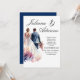 The watercolor wedding card features a charming and whimsical scene of a bride and groom. The card is a soft and elegant combination of pastel hues, with gentle washes of pink, lavender, and mint creating a dreamy background. The watercolor strokes give the card a delicate and artistic feel.
