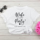 Cute t-shirt for the bride at her bachelorette party featuring "Wife of the Party" in a chic script with a heart and "Las Vegas, NV" in simple modern typography. You can change the party destination. A coordinating "The Party" t-shirt is available for the bachelorette group in your choice of colours.