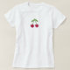 Cute cherry shirt to wear for everyday wear. The cherries are bright red and appear realistic. On trend with minimalist and fruit inspired attire.