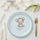 Cute Brown Bear Boy Plaid Blue Paper Plate