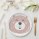 NewParkLane - Paper Plates, with a cute brown bear cartoon, against a fun patterned background of blush and white paws and hearts