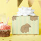 An adorable brown bunny, with big floppy ears, on a yellow and green striped background.