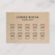 Minimalist coffee loyalty card with a creative design featuring illustrations of a cute coffee cup with a heart for the "punches" over a brown paper background. The backside has your contact information.