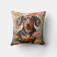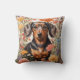 Cute Brown Dachshund And Cosmos Flowers Cushion