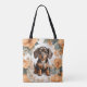 Cute Brown Dachshund Puppy Peach Floral Tote Bag