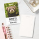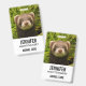 Name badge with an adorable photograph featuring a small brown ferret standing up in some long grass. Cute as can be!