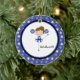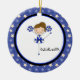 This is an adorable Christmas ornament for that cheerleader in your life! It's a cute stick figured cheerleader . She's wearing a blue and white uniform . The background is blue with white stars. She's kicking one leg up in the air. Check out the many other designs and colours in this line. Cherish this keepsake for many ,many years! ©JW Illustrations