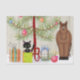 This Christmas holiday tissue paper features a cute brown horse and black kitten standing beneath a Christmas tree with festive gifts.