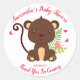 Cute Brown Monkey With Pink Flowers Baby Shower Classic Round Sticker