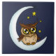 Cute Brown Owl Crescent Moon Stars Blue Tile