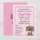 Cute Brown Puppy Dog Pink Girls Baby Shower Invitation
