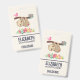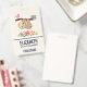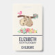 Name badge with an illustration of a cute brown sloth hanging upside down. This funny little guy is holding onto a branch which has a little pink bird on