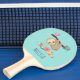 Ping pong paddle with an illustration of a cute brown sloth hanging upside down. This funny little guy is holding onto a branch which has a little pink bird on