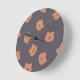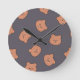 Cute Brown Teddy Bear Face Pattern Dark Blue Round Clock