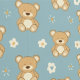 Cute Brown Teddy Bears White Stars on Aqua Blue Wallpaper