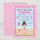 Cute Brunette Haired Girl Ballerina design with ballet slippers and accessories, cat and stars with pink hearts background