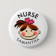 Cute Brunette Cartoon Nurse Name 6 Cm Round Badge