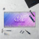Cute brushed purple faux silver glitter monogram desk mat
