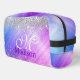 Cute brushed purple faux silver glitter monogram Personalised Cosmetic bag & Toiletry Dopp Kit. To make it extra special, it is also monogrammed and personalised with name or initials or any text you like, click the "customise further" link and use the design tool to modify the design if you like.
