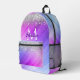 Cute brushed purple faux silver glitter monogram Personalised Backpack. To make it extra special, it is also monogrammed and personalised with name or initials or any text you like, click the "customise further" link and use the design tool to modify the design if you like.