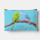 This Accessory Pouch features a digital painting of a cute budgie couple on a branch, one blue budgie, one green budgie. Beautiful pencil case for Kids! Custom text and background. Designed by Marions Artwork.